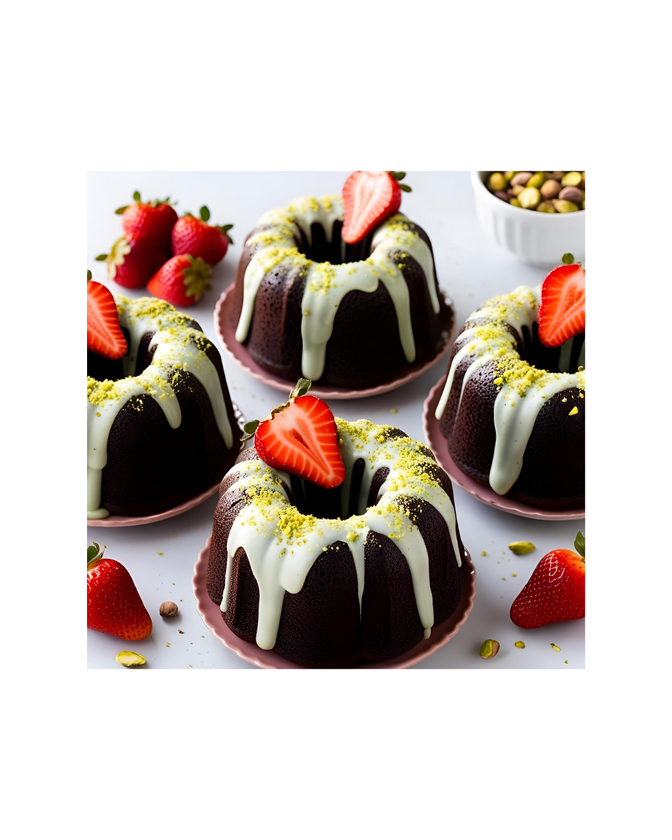 Our version of the famous Dubai cake made with our million dollar chocolate cake base, pistachio ganache and ripe strawberries.